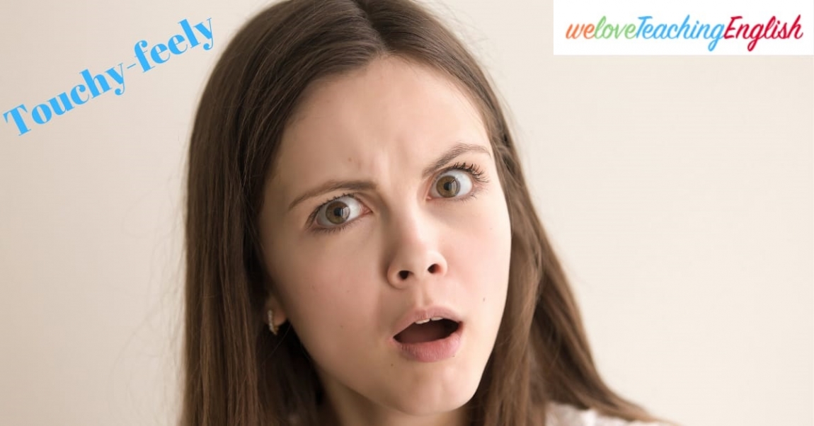 Touchy-feely is someone who expresses emotions such as love and affection so openly that other people find embarrassing and silly.